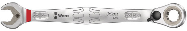 Joker Maulringratschenschlüssel mit abgewinkelter Ratschenseite und Umschalthebel. Mit Haltefunktion durch Metallplatte im Maul, die die Gefahr des Verlierens von Schrauben und Muttern reduziert. Der integrierte Endanschlag kann das Abrutschen vom Schraubenkopf nach unten verhindern und ermöglicht das Aufbringen hoher Drehmomente. Die auswechselbare Metallplatte im Maul sichert mit extra harten Zähnen Schrauben und Muttern und verringert die Abrutschgefahr. Die Doppelsechskantgeometrie sorgt für die formschlüssige Verbindung mit Schraube oder Mutter und damit ebenso für die Verringerung der Abrutschgefahr. Der geringe Rückschwenkwinkel von nur 30° auf der Maulseite vermeidet zeitintensives Wenden des Schlüssels beim Schrauben. Die umschaltbare Ratschenmechanik auf der Ringseite mit hoher Feinverzahnung (80 Zähne) sorgt für hohe Flexibilität auch in engen Bauräumen. Hörbar präzise Ratschenmechanik. Das robuste zweiteilige Rast-Element ermöglicht darüber hinaus eine extreme Standfestigkeit. Mit um 15° abgewinkelter Ratschenseite für sicheres Arbeiten bei hohen Drehmomenten. Die spezielle Schmiedegeometrie sorgt für hohe Drehmomentübertragung und hohe Biegesteifigkeit. Gefertigt aus leistungsfähigem Chrom-Molybdän-Stahl mit Nickel-Chrom Beschichtung für hohen Korrosionsschutz. Mit Werkzeugfinder Take it easy: Farbkennzeichnung nach Größen.