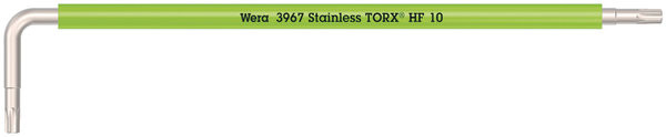 3967 SXL HF innensechsrund Winkelschlüssel Multicolour mit Haltefunktion, lang, Edelstahl, TX 10 x 112 mm Hochwertiger Winkelschlüssel aus Edelstahl für Innensechsrund-Schrauben. Sehr korrosionsbeständig durch eisgehärtetes Edelstahlmaterial der Winkelschlüssel, dadurch kann auch die Übertragung von Fremdrost bei Edelstahlverschraubungen vermieden werden. Mit Haltefunktion am langen Schenkel: Durch die aus der Flächenpressung zwischen der Abtriebsspitze und Schraubenprofil resultierende Klemmkraft werden die Schrauben sicher auf dem Werkzeug gehalten. Mit extra langem Schenkel für Arbeiten in tiefen Lagen. Die grifffreundliche Schlauchummantelung erleichtert das Schrauben auch bei niedrigen Temperaturen. "Take it easy" Werkzeugfinder mit Farbkennzeichnung nach Größen. 05022682001
