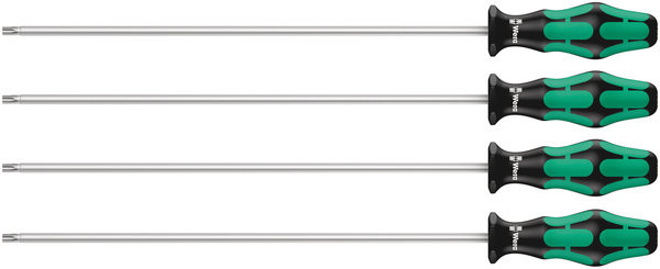 367/4 innensechsrund HF Kraftform Plus Schraubendrehersatz mit Haltefunktion mit 300 mm langen Klingen, 4-teilig 4x 367 innensechsrund HF Schraubendreher mit Haltefunktion: TX 20x300 mm, TX 25x300 mm, TX 27x300 mm, TX 30x300 mm4-teiliges Schraubendreherset von Wera. Mit extra langer Klinge auch für tiefergelegene, schwierig zu erreichende Arbeitssituationen. Mehrkomponentiger Kraftform Griff für schnelles und schonendes Arbeiten. Kraftform Plus: Harte Griffzonen für hohe Arbeitsgeschwindigkeit, während weiche Griffzonen hohe Drehmomentübertragung garantieren. Mit Haltefunktion: Durch die aus der Flächenpressung zwischen der Abtriebsspitze und Schraubenprofil resultierende Klemmkraft werden die Schrauben sicher auf dem Werkzeug gehalten. Der Sechskantabrollschutz verhindert lästiges Wegrollen am Arbeitsplatz. Mit Griffkennzeichnung zum leichteren Finden und Sortieren des Werkzeugs. 05028074001