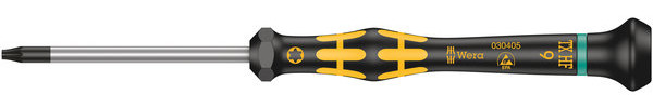 1567 innensechsrund HF ESD Kraftform Micro Schraubendreher mit Haltefunktion, TX 9 x 60 mmElektrostatisch abgesicherter Micro Schraubendreher. Sicherer Schutz vor elektrostatischer Energie und damit verbundenen Schäden. Mit praktischer Haltefunktion: Durch die aus der Flächenpressung zwischen der Abtriebsspitze und Schraubenprofil resultierende Klemmkraft werden die Schrauben sicher auf dem Werkzeug gehalten. Durch Abstützen der Hand auf der Drehkappe und durch die Schnelldrehzone unterhalb der Drehkappe ist blitzschnelles Zwirbeln möglich. Zeitintensives Umgreifen entfällt. Kraftzone mit integrierten Weichzonen sorgt für die Übertragung hoher Löse- und Anzugsmomente. Präzisionszone für den richtigen Drehwinkel bei Justierarbeiten. Die Black Point-Spitze bietet Passgenauigkeit und optimierten Korrosionsschutz. Take it easy Werkzeugfinder mit Farbkennzeichnung nach Profilen und Größenstempelung - zum einfachen und schnellen Finden des benötigten Werkzeugs. 05030405001