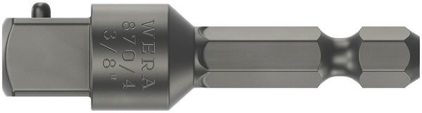 Werkzeugschaft (Verbindungsteil) für maschinenbetätigte Steckschlüsseleinsätze mit Außenvierkantabtrieb von Wera. Antrieb 1/4" Sechskant.