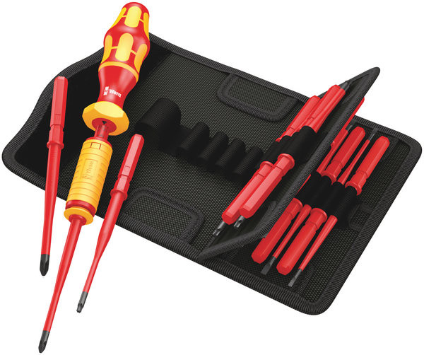 Kraftform Kompakt VDE 15 Torque 1,2-3,0 Nm extra slim 1, 15-teilig 1x Serie 7400 VDE Kraftform einstellbare Drehmoment-Handhalter (0,3-3,5 Nm): 7441 VDE x 1,2-3,0 Nm 2x Kraftform Kompakt VDE 62 iS: PH 1x154 mm, PH 2x154 mm 2x Kraftform Kompakt VDE 65 iS: PZ 1x154 mm, PZ 2x154 mm 2x Kraftform Kompakt VDE 65 iS PZ/S: # 1x154 mm, # 2x154 mm 1x Kraftform Kompakt VDE 67 i innensechsrund: TX 10 x 154 mm 3x Kraftform Kompakt VDE 67 iS innensechsrund: TX 15x154 mm, TX 20x154 mm, TX 25x154 mm 1x Kraftform Kompakt VDE 60 i: 0,4 x 2,5 x 154 mm 3x Kraftform Kompakt VDE 60 iS: 0,6x3,5x154 mm, 0,8x4x154 mm, 1x5,5x154 mm15-teiliger Drehmoment-VDE-Wechselklingensatz. Inklusive 14 Klingen (davon 12 mit reduziertem Klingendurchmesser) mit integrierter Schutzisolation. Drehmoment-VDE-Handhalter mit einstellbarem Drehmoment von 1,2-3,0 Nm. Mit ergonomischen Kraftform Plus Griff, bei dem harte Griffzonen für hohe Arbeitsgeschwindigkeit sorgen, während weiche Griffzonen hohe Drehmomentübertragung garantieren. 05059291001