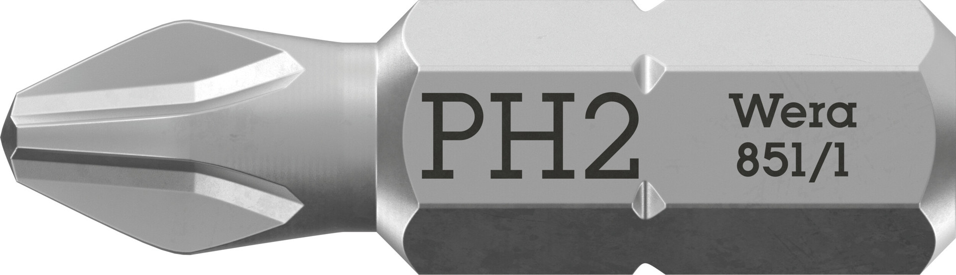 Zähharte Wera Bits für Phillips-Schrauben, für den universellen Einsatz. 1/4"-Sechskant, passend für Halter nach DIN ISO 1173-D 6,3.