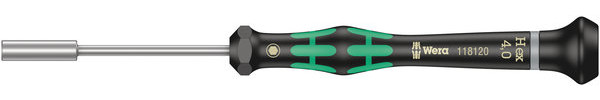 Hochwertiger Wera Micro Steckschlüssel für feinmechanische Verschraubungen. Durch Abstützen der Hand auf der Drehkappe und durch die Schnelldrehzone unterhalb der Drehkappe ist blitzschnelles Zwirbeln möglich. Zeitintensives Umgreifen entfällt. Kraftzone mit integrierten Weichzonen sorgt für die Übertragung hoher Löse- und Anzugsmomente. Präzisionszone für den richtigen Drehwinkel bei Justierarbeiten. Take it easy Werkzeugfinder mit Farbkennzeichnung nach Profilen und Größenstempelung - zum einfachen und schnellen Finden des benötigten Werkzeugs.