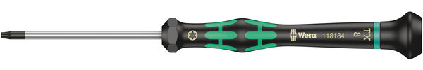 2067 Elektronik innensechsrund HF Schraubendreher mit Haltefunktion, TX 8 x 60 mm Hochwertiger Wera Micro Schraubendreher für feinmechanische Verschraubungen. Mit praktischer Haltefunktion: Durch die aus der Flächenpressung zwischen der Abtriebsspitze und Schraubenprofil resultierende Klemmkraft werden die Schrauben sicher auf dem Werkzeug gehalten. Durch Abstützen der Hand auf der Drehkappe und durch die Schnelldrehzone unterhalb der Drehkappe ist blitzschnelles Zwirbeln möglich. Zeitintensives Umgreifen entfällt. Kraftzone mit integrierten Weichzonen sorgt für die Übertragung hoher Löse- und Anzugsmomente. Präzisionszone für den richtigen Drehwinkel bei Justierarbeiten. Die Wera Black Point-Spitze bietet Passgenauigkeit und optimierten Korrosionsschutz. Take it easy Werkzeugfinder mit Farbkennzeichnung nach Profilen und Größenstempelung - zum einfachen und schnellen Finden des benötigten Werkzeugs. 05118184001