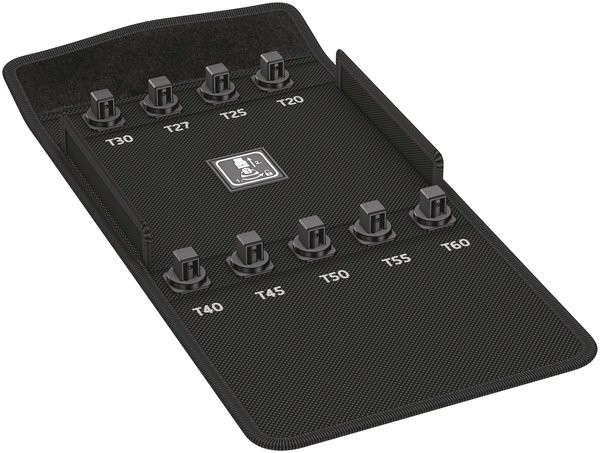 9406 Textile Box 8767 C innensechsrund HF 3, leer, 152 x 159 x 45 mmRobuste textile Box für platzsparende Aufbewahrung von Werkzeug, ideal bei mobilen Einsätzen, da das verwendete Material leicht und stabil ist, für bis zu 9 Steckschlüsseleinsätze (1/2") mit einer maximalen Länge von 140 mm, leer. 05136455001