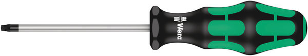 367 innensechsrund Schraubendreher, TX 25 x 100 mm Hochwertiger Kraftform Plus Schraubendreher. Mehrkomponentiger Kraftform Griff für schnelles und schonendes Arbeiten. Kraftform Plus: Harte Griffzonen für hohe Arbeitsgeschwindigkeit, während weiche Griffzonen hohe Drehmomentübertragung garantieren. Die Wera Black Point Spitze und ein aufwändiges Härteverfahren garantieren lange Nutzbarkeit der Spitze, erhöhten Korrosionsschutz und exakte Passgenauigkeit. "Take it easy" Werkzeugfinder mit Farbkennzeichnung nach Profilen und Größenstempelung - zum einfachen und schnellen Finden des benötigten Werkzeugs. Der Sechskantabrollschutz verhindert lästiges Wegrollen am Arbeitsplatz. 05028012001