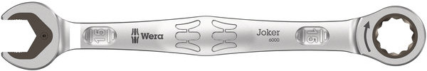 Hochwertiger, metrischer Ringratschen-Maulschlüssel von Wera: Alles, was ein Schlüssel können muss. Und noch viel mehr. Schneller, besser, schöner. Eben ein echter Joker. Die neue Generation der Maul-Ringratschen-Schlüssel. Für Sechskant-Schraubenköpfe bzw. -Muttern. Mit Haltefunktion durch Metallplatte im Maul, die die Gefahr des Verlierens von Schrauben und Muttern reduziert. Die auswechselbare Metallplatte im Maul sichert mit extra harten Zähnen Schrauben und Muttern und reduziert die Abrutschgefahr. Der integrierte Endanschlag kann das Abrutschen vom Schraubenkopf nach unten verhindern und ermöglicht das Aufbringen hoher Drehmomente. Die Doppelsechskantgeometrie sorgt für die formschlüssige Verbindung mit Schraube oder Mutter und damit für die Verringerung der Abrutschgefahr. Ein Rückschwenkwinkel von nur 30° auf der Maulseite vermeidet zeitintensives Wenden des Schlüssels beim Schrauben. Ratschenmechanik auf der Ringseite mit außergewöhnlich hoher Feinverzahnung von 80 Zähnen für Flexibilität auch in engen Bauräumen. Die spezielle Schmiedegeometrie sorgt für hohe Drehmomentübertragung und hohe Biegungssteifigkeit. Gefertigt aus leistungsfähigem Chrom-Molybdän-Stahl mit Nickel-Chrom Beschichtung für hohen Korrosionsschutz. Mit Werkzeugfinder Take it easy: Farbkennzeichnung nach Größen.