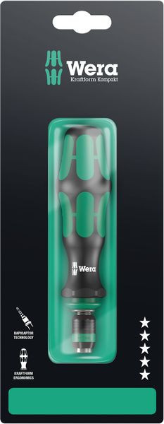 Hochwertiger Bit-Handhalter. Die im Griff versenkbare Bajonettklinge mit Schnellwechselfutter erlaubt die schnelle Handbetätigung auch in räumlich beengten Arbeitssituationen. Das Schnellwechselfutter Rapidaptor ermöglicht blitzschnellen Bitwechsel ohne Hilfswerkzeug. Der starke Dauermagnet hält die Bits bombenfest. Kraftform Plus Griff für angenehm ergonomisches Arbeiten, bei dem Blasen und Schwielen vermieden werden. Harte Griffzonen für hohe Arbeitsgeschwindigkeit, während weiche Griffzonen hohe Drehmomentübertragung garantieren. Geeignet für Bits mit 1/4"-Außensechskantantrieb nach DIN ISO 1173-C 6,3 und E 6,3 (ISO 1173).