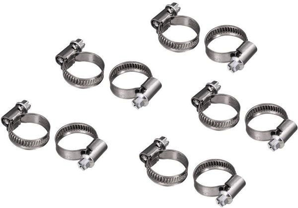 10er-Pack, 20 - 32 mm, zum Fixieren des Ablaufschlauches am Siphonanschluss bzw. an der Wasch-/Spülmaschine, für Zu- und Ablaufschläuche, Band und Gehäuse aus rostfreiem Stahl, Schraube verzinkt