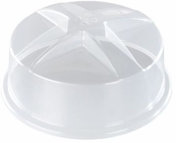 Mikrowellenhaube zum Erwärmen von Speisen in der Mikrowelle, verkürzt die Garzeit durch Verkleinerung des Garraums, zuverlässiger Spritzschutz, Dampfaustrittsöffnungen in der Mitte vermeiden Überdruck, besonders hoher, praktischer Griff zur leichten Abnahme der Haube von den Speisen, großflächiger Griff und mittige Dampföffnungen verhindern Verbrennen beim Abheben der Haube