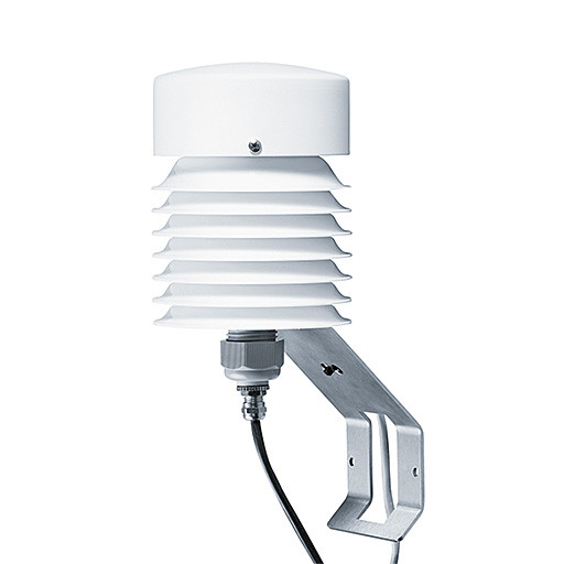 Gerät zur Messung der Temperatur in Luft und nicht aggressiven Gasen. Messelement: Widerstandsthermometer Pt 100, Messbereich: -30 °C... +70 °C, Einstellzeit: 20 s, Elektrischer Ausgang: 4 - 20 mA, Umgebungstemperatur: -40 °C... +80 °C, Bürde: max. 500 Ohm (für > 20 V DC Betriebsspannung), Schutzgrad Sensor / Elektronik: IP30/IP65, Betriebsspannung: 12 - 30 V DC, Eigenstrombedarf: ca. 5 mA (10 V ) / 3 mA (1 V), Abmessung: Durchmesser 20 x 138 mm, Gewicht: 0,35 kg, inklusive Wetter und Strahlenschutz (mit Ventilator und 5 m Anschlusskabel), inklusive Zubehör zur Montage auf Mastrohr (Durchmesser 30 - 50 mm oder größer mit mitgelieferter Rohrschelle), inklusive 5 m Kabel zum elektrischen Anschluss zum Anschlusskasten des Basispakets.