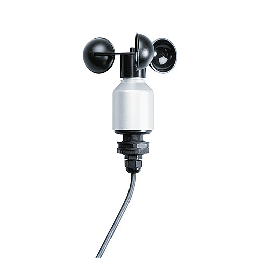 Gerät zur Erfassung der horizontalen Windgeschwindigkeit. Messbereich: 0,5 - 50 m/s, Auflösung: 0,1 m/s, Anlaufwert: 0,5 m/s, Genauigkeit: +/-0,5 m/s oder +/- 3 % vom Messwert, Messprinzip: Schalenstern/ opto-elektronisch, Elektrischer Ausgang: 4 - 20 mA, Bürde: max. 500 Ohm (für > 13 V DC Betriebsspannung), Betriebsspannung: 9 - 30 V DC oder 24 V AC/DC, Heizung: 24 V DC/AC, max. 20 W, Umgebungstemperatur: -30 °C... +70 °C, inklusive Zubehör zur Montage auf Traverse des Basispakets, inklusive 12 m Kabel (6 x 0,25 mm² LiYCY) für elektrischen Anschluss zum Anschlusskasten des Basispakets, Schutzart: IP55.