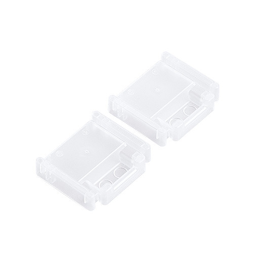 Tragschienen Endkappenset aus Kunststoff in weiß. Eine zugehörige Tragschienenendkappe reduziert die mit Leuchten bestückbare Tragschienenlänge um 5mm. Gewicht: 0,01 kg
