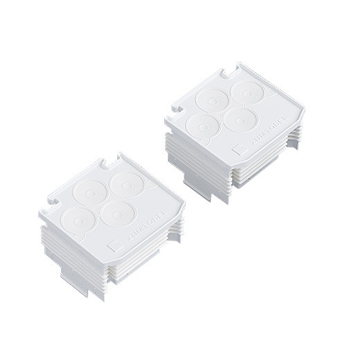Tragschienen Endkappenset aus Kunststoff in. Eine zugehörige Tragschienenendkappe reduziert die mit Leuchten bestückbare Tragschienenlänge um 5mm. Gewicht: 0,05 kg