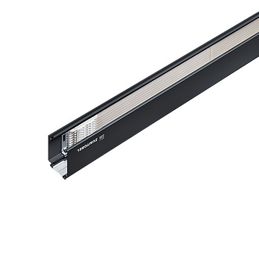 II Tragschiene Kit für den Lichtbandanfang. Tragschiene aus rollgeformtem Stahlblech in Polyester-Lackierung in Farbe schwarz. Insgesamt 15 Leiter, 5 Netzleitungen (5 x 2,5mm²/16A) plus 2 x 2 Leiter (4 x 2,5mm²/16A) zur Einbindung der Notbeleuchtung über zwei unabhängig voneinander isolierte Stromkreise, plus 3x2 Steuerleitungsleiter (6 x 1,5mm²/10A). Werkzeugloser mechanischer und elektrischer Anschluss. Umgebungstemperatur: -20°C bis +45°C. Abmessungen: 1000 x 64 x 60 mm, Gewicht: 1,84 kg. Jedes Startschienen-Kit enthält einen Satz (2 Stück) Endkappen, Sicherheitshülse, Kabelring und Montageanleitung.