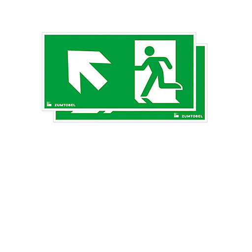 Sicherheitszeichen für CROSSIGN 110 MSC/TEC-GP, Abdeckung mit Sicherheitszeichen aus PC mit Digitaldruck, Sicherheitszeichen gemäß ISO 7010: 2seitig, Symbol: Rettungsweg/Notausgang. Richtungspfeil zur Seite nach oben, Erkennungsweite gemäß EN 1838: 22 m, Abmessung: 222 x 5 x 110 mm, Gewicht: 0,19 kg.