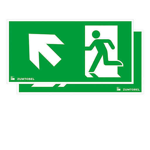 Sicherheitszeichen für CROSSIGN 160 MSC/TEC-GP Abdeckung mit Sicherheitszeichen , PC, mit Digitaldruck, Sicherheitszeichen gemäß ISO 7010: 2seitig, Symbol: Rettungsweg/Notausgang. Richtungspfeil zur Seite nach oben, Abmessung: 322 x 5 x 160 mm, Gewicht: 0,39 kg.
