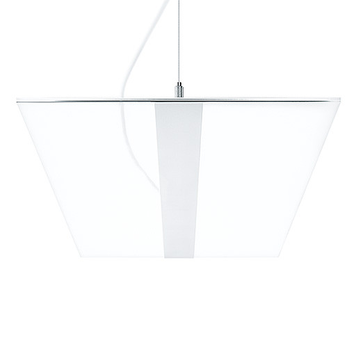 Minimalistische Indirekt-/Direkt-LED-Pendelleuchte mit transparentem Waveguide. Leuchten Leistung: 48,4 W, DALI steuerbare Leuchte mit LED-Konverter, LED-Lebensdauer 50000 h bis zu einem Lichtstromrückgang auf 80 % des Anfangswertes. Farborttoleranz (initial MacAdam): 3. Mit digital dimmbarem und gleichstromtauglichen LED-Konverter für DALI-Ansteuerung. Leuchten Lichtstrom: 6650 lm, Leuchten Lichtausbeute: 137 lm/W. Farbwiedergabe Ra > 80, Farbtemperatur 4000 K. Abstrahlcharakteristik direkt/indirekt im Verhältnis 55:45. UGR < 19. Lichtleiterplatte aus Polymethylmethacrylate mit definierten Strukturen für homogene Lichtpunktauflösung. Breite indirekte Lichtverteilung für hohe Gleichmassigkeit der Beleuchtungsstärke. Extrem flaches und randloses Erscheinungsbild für höchsten ästhetischen Anspruch. Leuchtenmittelsteg aus Aluminiumstrangpressprofil, pulverbeschichtet weiß mit integriertem Konverter. Leuchte halogenfrei verdrahtet, Einspeise.- bzw Abhängeset ist separat zu bestellen. Abmessungen: 1250 x 365 x 45 mm Gewicht: 5,4 kg