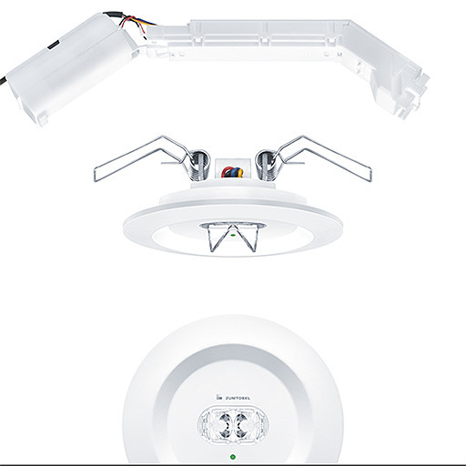 LED Sicherheitsleuchte zur Fluchtwegbeleuchtung mit min. 1 lux gemäß EN 1838, Raumhöhe 2,2 bis 10 m, high performance (HP) Variante ermöglicht höhere Leuchtenabstände sowie Anwendungen mit höheren Beleuchtungsstärken (z.B. 5 lux, 1 footcandle), 2 high power LEDs, neutralweiß 4.000 K, Linse aus Polycarbonat (PC), optimales Thermomanagement mittels Kühlblech, Decken-Einbauleuchte für 68 mm Deckenausschnitt und Deckenstärken von 1-25 mm, werkzeuglose Schnellmontage der Leuchte mittels speziell geformter Haltefedern, werkzeugloser Austausch von Akku und Betriebsgerät, Abdeckring aus Aluminiumdruckguss, pulverbeschichtet, Gehäusefarbe weiß (ähnlich RAL9016), Gerätebox für Deckeneinwurf aus Polypropylen (PP), Leuchte mit Einzelbatterieversorgung für 3 h Notlichtbetrieb in Dauer- oder Bereitschaftsschaltung, automatischer Test (Autotest) durch die Leuchte, optional zentrales Monitoring über DALI, Anzeige des Leuchtenstatus über Status-LED, NFC-Schnittstelle zur Adressierung, Konfiguration und Wartung durch PROset Pen (Artikelnr: 22170290) oder PROset App, Adressierung alternativ auch optisch oder per EZ-Adressierung möglich, Dauerschaltung: +5 °C bis +30 °C, Bereitschaftsschaltung: +5 °C bis +35 °C, Spannungsversorgung: 220-240 V AC (+/- 10 %), 50-60 Hz, Leuchten Leistung: 8,2 W (mit Batterie Schnell-Ladung in Dauerschaltung), typische Anschlussleistung (ohne Batterieladung): 6 W in Dauerschaltung / 1,1 W in Bereitschaftsschaltung, Bereitschafts- und Dauerschaltung über Jumper sowie NFC-Schnittstelle einstellbar, IP40, SC1, Leuchte halogenfrei und silikonfrei verdrahtet, geeignet zum Einbau in separat zu bestellendes Betoneingießgehäuse, Steckklemmen zur Durchgangsverdrahtung bis zu 2,5 mm², Schlagfestigkeit: IK04, Abmessungen: Durchmesser 85 x 4 mm, Gewicht: 0,54 kg, Robuster, integrierter Akku mit 3-Jahresgarantie. Gültig gemäß Bestimmungen der Herstellergarantie, einsehbar unter https://www.zumtobel.com/media/downloads/Garantiebedingungen_DE.pdf, Akkugarantie ungültig, wenn Installation erst drei (3) Monate nach Lieferung EXW (Incoterms 2010) erfolgt
