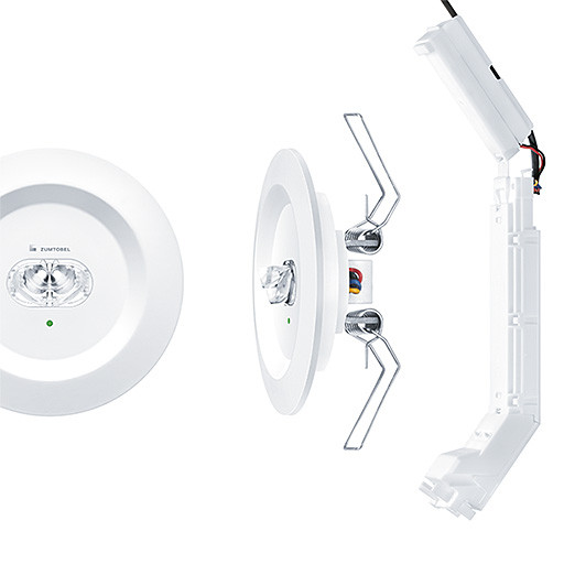 LED Sicherheitsleuchte zur Fluchtwegbeleuchtung bei Wandmontage mit min. 1 lux gemäß EN 1838, Raumhöhe 2,2 bis 8 m, 2 high power LEDs, neutralweiß 4.000 K, Linse aus Polycarbonat (PC), optimales Thermomanagement mittels Kühlblech, Wand-Einbauleuchte für 68 mm Wandausschnitt und Wandstärken von 1-25 mm, werkzeuglose Schnellmontage der Leuchte mittels speziell geformter Haltefedern, werkzeugloser Austausch von Akku und Betriebsgerät, Abdeckring aus Aluminiumdruckguss, pulverbeschichtet, Gehäusefarbe weiß (ähnlich RAL9016), Gerätebox für Deckeneinwurf aus Polypropylen (PP), Leuchte mit Einzelbatterieversorgung für 1 h Notlichtbetrieb in Dauer- oder Bereitschaftsschaltung, automatischer Test (Autotest) durch die Leuchte, optional zentrales Monitoring über DALI, Anzeige des Leuchtenstatus über Status-LED, NFC-Schnittstelle zur Adressierung, Konfiguration und Wartung durch PROset Pen (Artikelnr: 22170290) oder PROset App, Adressierung alternativ auch optisch oder per EZ-Adressierung möglich, Dauerschaltung: +5 °C bis +30 °C, Bereitschaftsschaltung: +5 °C bis +35 °C, Spannungsversorgung: 220-240 V AC (+/- 10 %), 50-60 Hz, Leuchten Leistung: 4,7 W (mit Batterie Schnell-Ladung in Dauerschaltung), typische Anschlussleistung (ohne Batterieladung): 3,5 W in Dauerschaltung /1,1 W in Bereitschaftsschaltung, Bereitschafts- und Dauerschaltung über Jumper sowie NFC-Schnittstelle einstellbar, IP20, SC1, Leuchte halogenfrei und silikonfrei verdrahtet, ballwurfsicher, Steckklemmen zur Durchgangsverdrahtung bis zu 2,5 mm², Schlagfestigkeit: IK04, Abmessungen: Durchmesser 85 x 4 mm, Gewicht: 0,33 kg, Leuchte mit D-Kennzeichen (zur Verwendung in einer Umgebung, in der ungewöhnliche Staubablagerung nicht erwartet wird) Robuster, integrierter Akku mit 3-Jahresgarantie. Gültig gemäß Bestimmungen der Herstellergarantie, einsehbar unter https://www.zumtobel.com/media/downloads/Garantiebedingungen_DE.pdf, Akkugarantie ungültig, wenn Installation erst drei (3) Monate nach Lieferung EXW (Incoterms 2010) erfolgt