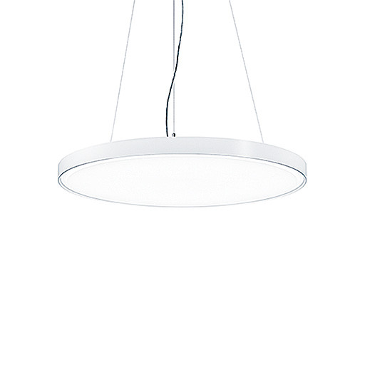 Dekorative LED-Rundleuchte mit Textilstoffabdeckung zur Schallabsorption für die Pendelmontage. Leuchten Leistung: 89,9 W, DALI steuerbare Leuchte mit LED-Konverter, LED-Lebensdauer 50000 h bis zu einem Lichtstromrückgang auf 90 % des Anfangswertes. Farborttoleranz (initial MacAdam): 3. Leuchten Lichtstrom: 5345 lm, Leuchten Lichtausbeute: 59 lm/W. Farbwiedergabe Ra > 80, Farbtemperatur 4000 K.Gehäuse aus Aluminium, silber lackiert. Textilstoff fest mit dem Rahmen verbunden. Inklusive elektronischem LED Konverter für DALI Ansteuerung. Leuchte halogenfrei verdrahtet Abmessungen: Durchmesser 870 x 105 mm Gewicht: 10 kg, Schlagfestigkeit: IK03. Pendelset mit entsprechender Seillänge separat zu bestellen.