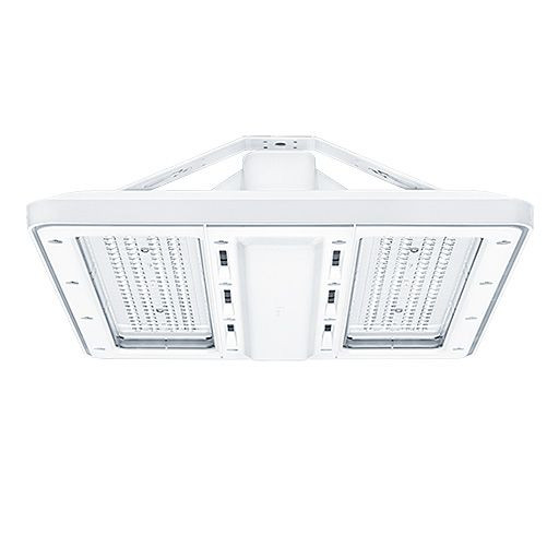 LED-Hallenleuchte für schwierigste Anwendungen, Leuchten Leistung: 167,4 W, inklusive LED-Konverter, DALI steuerbare Leuchte (DALI only), Gehäuse aus hochqualitativem, korrosionsbeständigem Aluminiumdruckguss pulverbeschichtet in Farbe weiß. Venturi-Luftdüsen für ausgezeichnetes Thermomanagement und Staubminimierung. Abdeckung aus klarem Polymethylmethacrylat (PM) mit hoher Bruchfestigkeit und optimierter Spannungsrissbeständigkeit, mit exzellenter chemischen und UV-Beständigkeit für anspruchsvolle Industrieanwendungen und Tierhaltung. Farborttoleranz (initial MacAdam): 2. Leuchten Lichtstrom: 25100 lm, Leuchten Lichtausbeute: 150 lm/W Farbwiedergabe Ra > 80, Farbtemperatur 4000 K. Entblendung: UGR < 25 gemäß EN 12464:2011. Geschlossenes, optisches Linsen-System. Linsen mit diagonaler Kalottenstruktur für höchste Effizienz. Symmetrisch breit abstrahlende Leuchte (wide beam). Vormontiertes 2 m langes Anschlusskabel 5 x 1 mm² für sehr hohe Dauertemperaturen (halogenfrei, flammhemmend). Vibrationsfest (EN 60598-1:2015/IEC 60598-1:2017 Ed. 8.1). LED Risikogruppe RG1 (IEC/EN 62471), Leuchte halogenfrei und silikonfrei verdrahtet. Hinweis: Vor Spezifikation für Einsatz in Umgebungsatmosphären mit chem. Belastung, hoher od. kondensierter Luftfeuchtigkeit, großen Temperaturschwankungen nehmen Sie Kontakt mit Ihrem Berater auf. Schutzklasse: SC1, Schutzart: IP66, Umgebungstemperatur: -10°C bis +45°C, Abmessungen: 518 x 414 x 109 mm. Gewicht: 7 kg.
