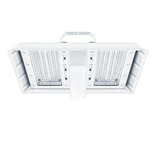 LED-Hallenleuchte Leuchten Leistung: 125,6 W, inklusive LED-Konverter, Leuchte mit Bewegungsmelder zum Ein-/Ausschalten, Gehäuse aus extra-robustem, tiefgezogenem Stahlblech pulverbeschichtet in Farbe weiß. Abdeckung aus hochwertigem, stoßfestem und UV-stabilisiertem Polycarbonat (PC), für den Einsatz in der Industrie und im Logistikbereich. Farborttoleranz (initial MacAdam): 2. Leuchten Lichtstrom: 21480 lm, Leuchten Lichtausbeute: 171 lm/W Farbwiedergabe Ra > 80, Farbtemperatur 4000 K.Entblendung: UGR < 25 gemäß EN 12464:2011. Geschlossenes, optisches Linsen-System. Linsen mit diagonaler Kalottenstruktur für höchste Effizienz Symmetrisch breit abstrahlende Leuchte (wide beam). Vormontiertes 2 m langes Anschlusskabel 5 x 1 mm² für sehr hohe Dauertemperaturen (halogenfrei, flammhemmend). Vibrationsfest (EN 60598-1:2015/IEC 60598-1:2017 Ed. 8.1). LED Risikogruppe RG1 (IEC/EN 62471), Leuchte halogenfrei und silikonfrei verdrahtet. Hinweis: Vor Spezifikation für Einsatz in Umgebungsatmosphären mit chem. Belastung, hoher od. kondensierter Leuftfeuchtigkeit, großen Temperaturschwankungen nehmen Sie Kontakt mit Ihrem Berater auf. Schutzklasse: SC1, Schutzart: IP66, Umgebungstemperatur: -20°C bis +40°C, Abmessungen: 540 x 470 x 116 mm. Gewicht: 4,94 kg.