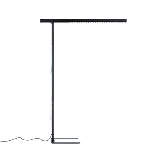 LED-Stehleuchte in schwarz matt, für Einzel-Doppelarbeitsplatz mit seperater Steuerung des Direkt-/Indirektlichts Reduziertes, zeitloses Design durch Verwendung einfacher geometrischer Grundformen. Lichtkopf mit Rasteroptik des Direktanteils für entblendete Lichtverteilung gemäß EN 12464-1, mit UGR < 19 und L65 < 3000 cd/m² Leuchtenkopf aus Aluminium, Säule und Fußplatte aus Stahl für hohe Sicherheit. Die gesamte Leuchte ist werkzeuglos montierbar Bedienung der Leuchte mittels Fernbedienung pulverbeschichtet,schwarz matt (ähnlich RAL 9005) Farbwiedergabe Ra > 80, Farbtemperatur 3000 K Abstrahlcharakteristik direkt-indirekt im Verhältnis 18:82 Farborttoleranz (initial MacAdam): 3, Leuchten Lichtstrom: 13410 lm, Leuchten Leistung: 102,7 W Höhe der Leuchte: 2043, Dimension Leuchtenkopf 1466mm x 48mm x 44mm Kabel seperat zu bestellen