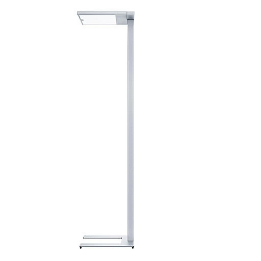 Zeitlos elegante Stehleuchte zur Arbeitsplatzbeleuchtung mit individueller Lichtsteuerung für separate Steuerung des Direkt- / Indirektlichts mittel Fernbedienung. LED-Konverter integriert im Leuchtenkopf, Leuchte mit SensControl - intelligente Anwesenheitssteuerung und Helligkeitssensorik zur maximalen Energieoptimierung. Leuchte mit einem Leuchtenkopf zur flexible Positionierung am Einzel-Arbeitsplatz, Leuchten Lichtleistung 12360, davon rund 20% Direktlicht und 80% doppelt asymmetrisch abstrahlendes Indirektlicht. silber, Stehleuchte bodenstehen mit einer Leuchtensäule in 1,96m, 2,5 m lange Anschlussleitung Durchmesser 1,5 mm² mit Schutzkontaktstecker (Schuko) lt. DIN 49441 Form R2, 4000 Kelvin bei Farbwiedergabe Ra > 90, Gewicht: 17,65 kg