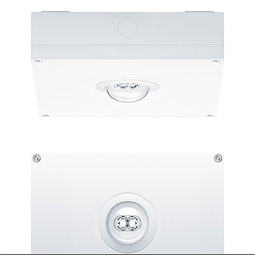 LED Sicherheitsleuchte zur Antipanik-Beleuchtung mit min. 0,5 lux gemäß EN 1838, Raumhöhe 2,2 bis 10 m, high performance (HP) Variante ermöglicht höhere Leuchtenabstände sowie Anwendungen mit höheren Beleuchtungsstärken (z.B. 2 lux), 2 high power LEDs, neutralweiß 4.000 K, Linse aus Polycarbonat (PC), optimales Thermomanagement mittels Kühlblech, Decken-Anbauleuchte, Schraubmontage des Geräteträgers sowie der IP65-Abdeckung, Leuchtengehäuse aus Aluminiumdruckguss, pulverbeschichtet, Gehäusefarbe weiß (ähnlich RAL9016), Abdeckung weiß aus glasfaserverstärktem PC mit transparentem Lichtauslass in PC, Leuchte für zentrale Notlichtversorgung zur Einzelüberwachung der Leuchte über Powerline in Verbindung mit dem eBox System, einstellbarer Notlichtlevel, NFC-Schnittstelle zur Adressierung, Konfiguration und Wartung durch PROset Pen (Artikelnr: 22170290) oder PROset App, Adressierung alternativ auch optisch oder per EZ-Adressierung möglich, Dauer- und Bereitschaftsschaltung: -40 °C bis +35 °C, Spannungsversorgung: 220-240 V AC (+/- 10 %) 50-60 Hz, 176-280 V DC, Leuchten Leistung: 7,5 W (in Dauerschaltung), Anschlussleistung in Bereitschaftsschaltung: 0,3 W, Bereitschafts- und Dauerschaltung über das Zentralbatteriesystem einstellbar, IP65, SC1, Leuchte halogenfrei und silikonfrei verdrahtet, ballwurfsicher, Steckklemmen zur Durchgangsverdrahtung bis zu 2,5 mm², Schlagfestigkeit: IK04, Abmessungen: 200 x 145 x 64 mm, Gewicht: 0,9 kg, Leuchte mit D-Kennzeichen (zur Verwendung in einer Umgebung, in der eine Ablagerung von leitfähigem Staub auf der Leuchte erwartet werden kann)