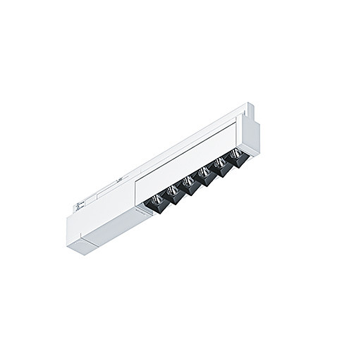 Kompakter, schwenkbarer LED-Strahler mit linear, synchron schwenkbaren Einzellichtköpfen "Synchro-Gimbal", zur flexiblen Akzentbeleuchtung und horizontalen Flächenbeleuchtung mit hoher Brillanz und sehr guter Entblendung, linearer Lichtkopf an der Stromschiene schwenkbar (+/-90°) oder im U- bzw. H-Kanalprofil bzw. deckenbündigem Einbau schwenkbar (+/-25°), mit 6 Einzellichtköpfen linear, synchron schwenkbar (+/-20°) ermöglichen einen rotierenden Lichtkegel, präzise und gleichmäßige Lichtverteilung, sehr gute Entblendung UGR<13, Abblendwinkel 45°, Leuchte mit 3 Phasen Adapter mit Betriebsgerät im Adapter, Trackbox (für 3 Phasen-Stromschiene), Bestückung: 18W LED1700-930, FLOOD-Abstrahlcharakteristik, Reflektor: silber mit Deko-Rand schwarz, hochglänzend, Farbwiedergabe Ra > 90, Farbtemperatur 3000 K (warm weiß), Farborttoleranz (initial MacAdam): 2, Leuchten Lichtstrom: 1700 lm, Leuchten Lichtausbeute: 81 lm/W, Lebensdauer: 50000h bei 90% Lichtstrom, mit Betriebsgerät, schaltbare Leuchte, passive Kühlung durch patentierten, innovativen Wärmehaushalt, Strahlergehäuse aus Aluminiumdruckguss, weiß lackiert, Reflektoreinheit aus Polycarbonat (PC) 2-teilig: Kopf aluminiumbesputtert, facettiert hochglänzend / Fuß quadratisch mit Deko-Rand, Leuchte halogenfrei verdrahtet, Leuchten Leistung: 21 W, Netzspannung: 220-240 V / 50/60 Hz , Abmessungen: 398x35x79 mm, Gewicht: 0,67 kg Hinweis: Unterschiedliche Farbkombinationen (Design-Personalisierung) der einzelnen Bauteile als Variante über mySUPERSYSTEM INTEGRAL bestellbar Hinweis: Horizontale und vertikale Wandmontage zulässig, für Punktauslass nicht geeignet!