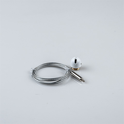 Stahlseilabhängung (Set), bestehend aus: Aufhängedom weiß, Stahlseil: Durchmesser 1,8 mm, Länge 2000 mm, Patentabhänger für stufenlose Höheneinstellung, Befestigung des Patentabhängers decken- oder stromschienenseitig möglich, maximale Zugbelastung: 20 kg