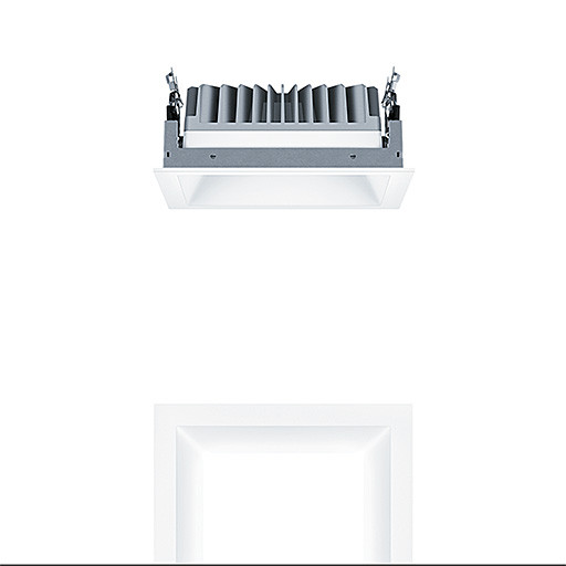 LED Decken-Einbauleuchte (Komplettleuchte), Einsatz bei limitiertem Platz in der Decke: Einbautiefe nur 100mm, LED Leuchte "stableWhite" mit symmetrisch, breitstrahlender Lichtverteilung mit höchster Leuchteneffizienz und optimaler Lichttechnik, Bestückung: 15 W LED840, Farbwiedergabe Ra > 80, Farbtemperatur 4000 K (neutral weiß), Farborttoleranz (initial MacAdam): 3, Leuchten Lichtstrom: 1916 lm, Leuchten Lichtausbeute: 128 lm/W, Lebensdauer: 50000h bei 85% Lichtstrom, mit separater Vorschaltgeräte-Einheit, hochwertige Reflektoreinheit über Verrastung an modulare LED Lichtkammer befestigt, hocheffiziente LED Lichtkammer integriert im optimierten, passiven Wärmemanagement aus Aluminiumdruckguss, Reflektor:glatt, weiß lackiert, Reflektor/Abdeckrahmen eine Einheit aus hochwertigem, UV-beständigem Polycarbonat (PC), Abdeckrahmen weiß, abnehmbar, Einbaurahmen aus Aluminiumdruckguss, werkzeuglose Schnellmontage der Leuchteneinheit über EASY-CLICK-Verschluss, IP44_IP20, Leuchte halogenfrei verdrahtet, Anschluss: 3-polige Steckverbindungsklemme, Durchschleifen möglich, Netzspannung: 220-240 V / 0/50/60 Hz, Zentralbatterietauglich 220V DC, Montage: werkzeuglose Schnellmontage mittels Haltefedern für Deckenstärken von 1-25mm, Deckenausschnitt: 190x190mm, Einbautiefe: 100mm, Gewicht: 1,35 kg Hinweis: Für Office Anwendungen gemäß EN12464 (UGR<19, Reflektortyp aluminiumbesputtert) ist ein zusätzlicher Entblendungsrahmen separat zu bestellen