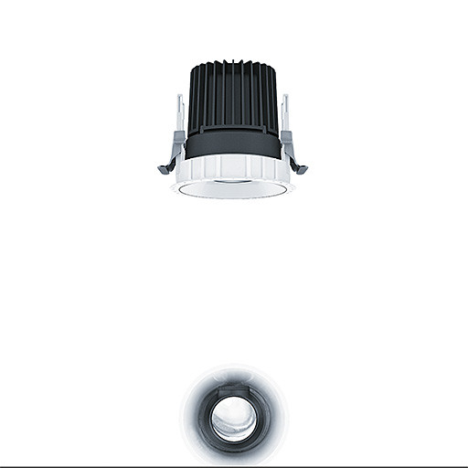 LED Decken-Einbauleuchte (adjustable), ohne Abdeckring "trimless", mit innovativer Linsentechnologie, werkzeuglose, intuitive Einstellung des Lichtkegels über zwei verdrehbare Linsen aus PMMA, bei eingeschalteter Leuchte, Lichtkegel 360° drehbar und bis 30° schwenkbar, homogene Lichtverteilung mit hoher Leuchtenintensität, geschlossenes Lichtsystem erzeugt ruhiges Deckenbild unbahängig von der eingestellten Lichtrichtung, Bestückung: 15 W LED930, SPOT-Abstrahlcharakteristik, Reflektor: glatt, weiß lackiert (15 °), Farbwiedergabe Ra > 90, Farbtemperatur 3000 K (warm weiß), Farborttoleranz (initial MacAdam): 3, Leuchten Lichtstrom: 470 lm, Leuchten Lichtausbeute: 31 lm/W, Lebensdauer: 50000h bei 85% Lichtstrom, mit separater Vorschaltgeräte-Einheit DALI steuerbare Leuchte (DALI only), hochwertige optische Einheit intergriert im optimierten Wärmemanagement aus Aluminiumdruckguss, Reflektor aus hochwertigem, UV-beständigem Polycarbonat (PC), werkzeuglose Schnellmontage der Leuchteneinheit mittels Bajonettverschluss, IP20, Leuchte halogenfrei verdrahtet, Anschluss: 5-polige Steckverbindungsklemme, Durchschleifen möglich, Netzspannung: 220-240V / 0/50/60Hz, Montage: werkzeuglose Schnellmontage mittels Anti-Rutsch-Haltefedern für Deckenstärken von 1-40mm, Deckenausschnitt: 100mm, Einbautiefe: 125mm (für Deckenstärken von 1-25mm), Gewicht: 0,62 kg Hinweis: Aufnahmering (Planarring) zum deckenbündigen Einbau der Leuchte ist separat zu bestellen (siehe Zubehör)