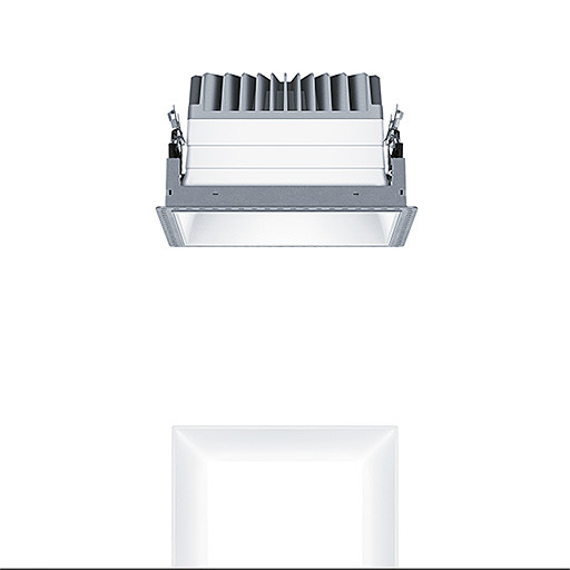 LED Decken-Einbauleuchte ohne Abdeckrahmen "trimless", LED Leuchte "stableWhite" mit symmetrisch, breitstrahlender Lichtverteilung mit höchster Leuchteneffizienz und optimaler Lichttechnik, Bestückung: LED1800-940, Farbwiedergabe Ra > 90 (R9>50), Farbtemperatur 4000 K (neutral weiß), Farborttoleranz (initial MacAdam): 2, Leuchten Leistung: 15 W, Leuchten Lichtstrom: 1800 lm, Leuchten Lichtausbeute: 120 lm/W, Lebensdauer: 100000h bei 90% Lichtstrom bzw. 50000h bei 95% Lichtstrom, mit separater Vorschaltgeräte-Einheit DALI steuerbare Leuchte (DALI only), hochwertige Reflektoreinheit über Verrastung an modulare LED Lichtkammer befestigt, hocheffiziente LED Lichtkammer integriert im optimierten, passiven Wärmemanagement aus Aluminiumdruckguss, Reflektor:glatt, weiß lackiert, Reflektor aus hochwertigem, UV-beständigem Polycarbonat (PC), werkzeuglose Schnellmontage der Leuchteneinheit über EASY-CLICK-Verschluss, IP20, Leuchte halogenfrei verdrahtet, Anschluss: 5-polige Steckverbindungsklemme, Durchschleifen möglich, Netzspannung: 220-240 V / 0/50/60 Hz, Zentralbatterietauglich 220V DC , Montage: werkzeuglose Schnellmontage mittels Haltefedern für Deckenstärken von 1-25mm, Deckenausschnitt: 190x190mm, Einbautiefe: 126mm, Gewicht: 1,23 kg Hinweis: UGR<19 (Reflektortyp aluminiumbesputtert) für Office Anwendungen gemäß EN12464 Hinweis: Aufnahmerahmen (Planarrahmen) zum deckenbündigen Einbau der Leuchte ist separat zu bestellen (siehe Zubehör)