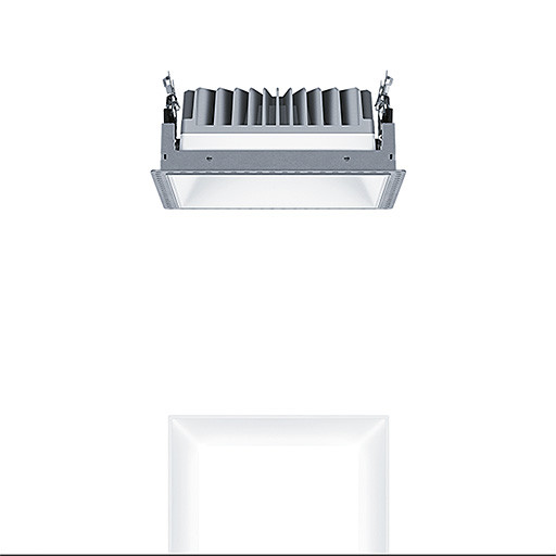 LED Decken-Einbauleuchte ohne Abdeckrahmen "trimless", Einsatz bei limitiertem Platz in der Decke: Einbautiefe nur 100mm, LED Leuchte "stableWhite" mit symmetrisch, breitstrahlender Lichtverteilung mit höchster Leuchteneffizienz und optimaler Lichttechnik, Bestückung: LED2500-940, Farbwiedergabe Ra > 90 (R9>50), Farbtemperatur 4000 K (neutral weiß), Farborttoleranz (initial MacAdam): 2, Leuchten Leistung: 19 W, Leuchten Lichtstrom: 2584 lm, Leuchten Lichtausbeute: 136 lm/W, Lebensdauer: 100000h bei 90% Lichtstrom bzw. 50000h bei 95% Lichtstrom, mit separater Vorschaltgeräte-Einheit DALI steuerbare Leuchte (DALI only), hochwertige Reflektoreinheit über Verrastung an modulare LED Lichtkammer befestigt, hocheffiziente LED Lichtkammer integriert im optimierten, passiven Wärmemanagement aus Aluminiumdruckguss, Reflektor:glatt, weiß lackiert, Reflektor aus hochwertigem, UV-beständigem Polycarbonat (PC), werkzeuglose Schnellmontage der Leuchteneinheit über EASY-CLICK-Verschluss, IP20, Leuchte halogenfrei verdrahtet, Anschluss: 5-polige Steckverbindungsklemme, Durchschleifen möglich, Netzspannung: 220-240 V / 0/50/60 Hz, Zentralbatterietauglich 220V DC , Montage: werkzeuglose Schnellmontage mittels Haltefedern für Deckenstärken von 1-25mm, Deckenausschnitt: 190x190mm, Einbautiefe: 100mm, Gewicht: 1,12 kg Hinweis: Aufnahmerahmen (Planarrahmen) zum deckenbündigen Einbau der Leuchte ist separat zu bestellen (siehe Zubehör), für Office Anwendungen gemäß EN12464 (UGR<19, Reflektortyp aluminiumbesputtert) ist ein zusätzlicher Entblendungsrahmen separat zu bestellen