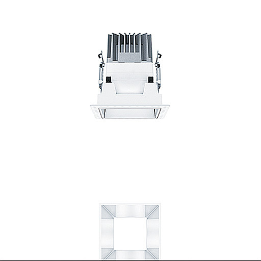 LED Decken-Einbauleuchte ohne Abdeckrahmen "trimless", LED Leuchte "tunableWhite", mit dynamischer Farbtemperaturveränderung bei gleichbleibendem Leuchtenlichtstrom über DALI-Signal (DT8 Standard) einstellbar, Abblendwinkel 45°, Bestückung: LED1000-927-65, Farbwiedergabe Ra > 90, Farbtemperatur (tunable) 2700-6500 K (warmweiß-neutralweiß-tageslichtlichtweiß), Farborttoleranz (initial MacAdam): 3, Leuchten Leistung: 14 W, Leuchten Lichtstrom: 1000 lm, Leuchten Lichtausbeute: 71 lm/W, Lebensdauer: 50000h bei 80% Lichtstrom, mit Vorschaltgeräte-Einheit DALI steuerbare Leuchte (DALI only), Dimmbereich: 1-100%, inklusive "Fade-to Zero", modulare, hochwertige optische Einheit aus Reflektor und LED-Lichtkammer, intergriert im optimierten Wärmemanagement aus Aluminiumdruckguss, glatter Reflektor aluminiumbesputtert, hochglänzend, irisierungsfrei, Reflektor aus hochwertigem, UV-beständigem Polycarbonat (PC), werkzeuglose Schnellmontage der Leuchteneinheit über EASY-CLICK-Verschluss, IP20, Leuchte halogenfrei verdrahtet, Anschluss: 5-polige Steckverbindungsklemme, Durchschleifen möglich, Netzspannung: 220-240 V / 0/50/60 Hz, Zentralbatterietauglich 220V DC , Montage: werkzeuglose Schnellmontage mittels Haltefedern für Deckenstärken von 1-25mm, Deckenausschnitt: 100x100mm, Einbautiefe: 134mm, Gewicht: 0,62 kg Hinweis: UGR<19 für Office Anwendungen gemäß EN12464 (abhängig von der Leuchtentype) Hinweis: Aufnahmerahmen (Planarrahmen) zum deckenbündigen Einbau der Leuchte ist separat zu bestellen (siehe Zubehör)