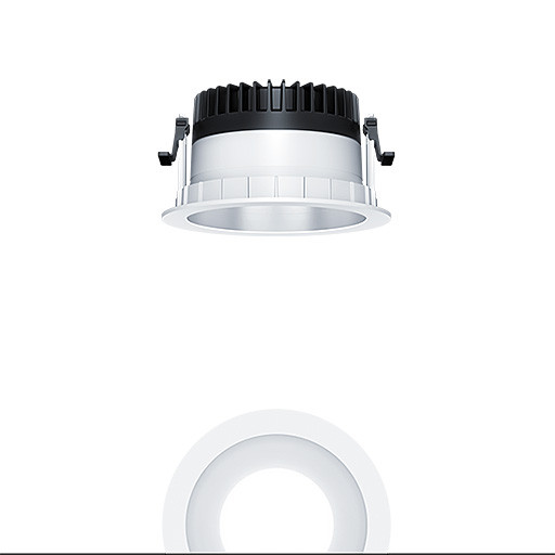 LED Decken-Einbauleuchte (Komplettleuchte) R150, symmetrisch, breitstrahlender Lichtverteilung (70 °), höchste Leuchteneffizienz und eine optimale Downlight Lichttechnik, hohe Nachhaltigkeit aufgrund durchgängigen, maximal- modularen Aufbau und austauschbaren Komponenten, Austauschbares LED-Modul, Farbwiedergabe Ra > 80, Farbtemperatur 3000 K, Farborttoleranz (initial MacAdam): 2, Leuchten Leistung: 13,9 W, Leuchten Lichtstrom: 1870 lm, Leuchten Lichtausbeute: 135 lm/W, Mittlere Bemessungslebensdauer: L90 100000 h bei 25 °C + L95 50000 h bei 25 °C, mit separaten, steckbaren LED-Konverter, DALI steuerbare Leuchte (DALI only) mit DC-Funktion, einstellbar 1-100 %, Notstromlevel auf 15% voreingestellt, NFC konfigurierbar, SwitchDIM-kompatibel, hochwertige Reflektoreinheit über Bajonettverschluss an modularer LED-Lichtkammer arretiert, hocheffiziente LED Lichtkammer integriert im optimierten, passives Wärmemanagement aus hochwertigem wärmeleitendem Polycarbonat, Reflektor/Abdeckring aus hochwertigem, UV-beständigem Polycarbonat (PC), Reflektor: glatt, aluminiumbesputtert, silber matt glänzend, irisierungsfrei, Abdeckring: weiß, Einbauring aus Polycarbonat (PC), weiß, Schutzart: IP54_IP20, Leuchte halogenfrei verdrahtet, Anschluss: 5-polige Steckverbindungsklemme, Durchschleifen möglich, Netzspannung: 220-240 V / 0/50/60 Hz, Zentralbatterietauglich 220-240V DC, Montage: werkzeuglose Schnellmontage mittels Anti-Rutsch-Haltefedern für Deckenstärken von 1-40mm (je nach Leuchtenvariante) aufgrund austauschbarer Haltestege, werkzeuglose Schnellmontage der Leuchteneinheit mittels Bajonettverschluss, Deckenausschnitt: 150mm, Einbautiefe: 100mm, Gewicht: 0,56 kg Für Office Anwendungen gemäß EN12464 (UGR<19 Reflektortyp aluminiumbesputtert)