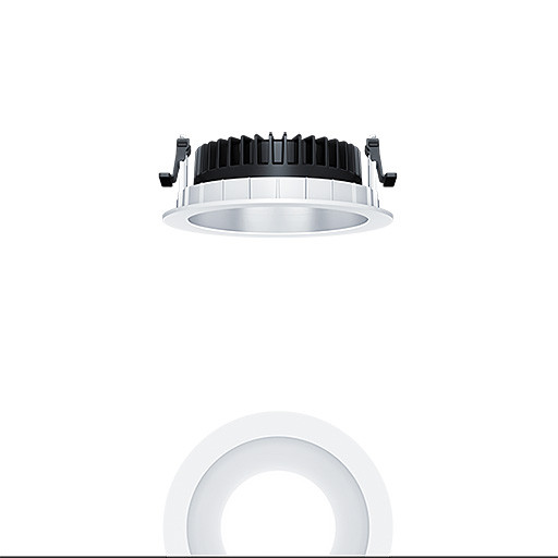LED Decken-Einbauleuchte (Komplettleuchte) R150, symmetrisch, breitstrahlender Lichtverteilung (85 °), höchste Leuchteneffizienz und eine optimale Downlight Lichttechnik, hohe Nachhaltigkeit aufgrund durchgängigen, maximal- modularen Aufbau und austauschbaren Komponenten, Austauschbares LED-Modul, Farbwiedergabe Ra > 80, Farbtemperatur 4000 K, Farborttoleranz (initial MacAdam): 2, Leuchten Leistung: 8,2 W, Leuchten Lichtstrom: 1160 lm, Leuchten Lichtausbeute: 141 lm/W, Mittlere Bemessungslebensdauer: L90 100000 h bei 25 °C + L95 50000 h bei 25 °C, mit separaten, steckbaren LED-Konverter, DALI steuerbare Leuchte (DALI only) mit DC-Funktion, einstellbar 1-100 %, Notstromlevel auf 15% voreingestellt, NFC konfigurierbar, SwitchDIM-kompatibel, hochwertige Reflektoreinheit über Bajonettverschluss an modularer LED-Lichtkammer arretiert, hocheffiziente LED Lichtkammer integriert im optimierten, passives Wärmemanagement aus hochwertigem wärmeleitendem Polycarbonat, Reflektor/Abdeckring aus hochwertigem, UV-beständigem Polycarbonat (PC), Reflektor: glatt, aluminiumbesputtert, silber matt glänzend, irisierungsfrei, Abdeckring: weiß, Einbauring aus Polycarbonat (PC), weiß, Schutzart: IP54_IP20, Leuchte halogenfrei verdrahtet, Anschluss: 5-polige Steckverbindungsklemme, Durchschleifen möglich, Netzspannung: 220-240 V / 0/50/60 Hz, Zentralbatterietauglich 220-240V DC, Montage: werkzeuglose Schnellmontage mittels Anti-Rutsch-Haltefedern für Deckenstärken von 1-25mm (je nach Leuchtenvariante) aufgrund austauschbarer Haltestege, werkzeuglose Schnellmontage der Leuchteneinheit mittels Bajonettverschluss, Deckenausschnitt: 150mm, Einbautiefe: 70mm, Gewicht: 0,5 kg Geringe Einbautiefe bei Einsatz mit limitiertem Platz in der Decke.