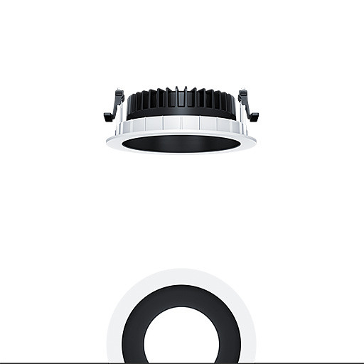 LED Decken-Einbauleuchte (Komplettleuchte) R150, symmetrisch, breitstrahlender Lichtverteilung (90 °), höchste Leuchteneffizienz und eine optimale Downlight Lichttechnik, hohe Nachhaltigkeit aufgrund durchgängigen, maximal- modularen Aufbau und austauschbaren Komponenten, Austauschbares LED-Modul, Farbwiedergabe Ra > 80, Farbtemperatur 3000 K, Farborttoleranz (initial MacAdam): 2, Leuchten Leistung: 13,9 W, Leuchten Lichtstrom: 1910 lm, Leuchten Lichtausbeute: 137 lm/W, Mittlere Bemessungslebensdauer: L90 100000 h bei 25 °C + L95 50000 h bei 25 °C, mit separaten, steckbaren LED-Konverter, DALI steuerbare Leuchte (DALI only) mit DC-Funktion, einstellbar 1-100 %, Notstromlevel auf 15% voreingestellt, NFC konfigurierbar, SwitchDIM-kompatibel, hochwertige Reflektoreinheit über Bajonettverschluss an modularer LED-Lichtkammer arretiert, hocheffiziente LED Lichtkammer integriert im optimierten, passives Wärmemanagement aus hochwertigem wärmeleitendem Polycarbonat, Reflektor/Abdeckring aus hochwertigem, UV-beständigem Polycarbonat (PC), Reflektor: schwarz lackiert, Abdeckring: weiß, Einbauring aus Polycarbonat (PC), weiß, Schutzart: IP54_IP20, Leuchte halogenfrei verdrahtet, Anschluss: 5-polige Steckverbindungsklemme, Durchschleifen möglich, Netzspannung: 220-240 V / 0/50/60 Hz, Zentralbatterietauglich 220-240V DC, Montage: werkzeuglose Schnellmontage mittels Anti-Rutsch-Haltefedern für Deckenstärken von 1-25mm (je nach Leuchtenvariante) aufgrund austauschbarer Haltestege, werkzeuglose Schnellmontage der Leuchteneinheit mittels Bajonettverschluss, Deckenausschnitt: 150mm, Einbautiefe: 70mm, Gewicht: 0,5 kg Geringe Einbautiefe bei Einsatz mit limitiertem Platz in der Decke.