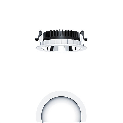 LED Decken-Einbauleuchte (Komplettleuchte) R150, mit symmetrisch, breitstrahlender Lichtverteilung (80 °), höchste Leuchteneffizienz und eine optimale Downlight Lichttechnik, hohe Nachhaltigkeit aufgrund durchgängigen, maximal- modularen Aufbau und austauschbaren Komponenten. Austauschbares LED Modul, symmetrisch, breitstrahlender Lichtverteilung, Farbwiedergabe Ra > 90 (R9>50), Farbtemperatur 4000 K, Farborttoleranz (initial MacAdam): 2, Leuchten Leistung: 8,1 W, Leuchten Lichtstrom: 1140 lm, Leuchten Lichtausbeute: 141 lm/W, Mittlere Bemessungslebensdauer: L80 100000 h bei 25 °C + L90 50000 h bei 25 °C, mit separaten, steckbaren LED-Konverter, schaltbare Leuchte, hochwertige Reflektoreinheit über Bajonettverschluss an modularer LED-Lichtkammer arretiert, hocheffiziente LED Lichtkammer integriert im optimierten, passives Wärmemanagement aus hochwertigem wärmeleitendem Polycarbonat, Reflektor/Abdeckring aus hochwertigem, UV-beständigem Polycarbonat (PC), Reflektor: aluminiumbesputtert, hochglänzend, irisierungsfrei, Abdeckring: weiß, Einbauring aus Polycarbonat (PC), weiß, Schutzart: IP54, Leuchte halogenfrei verdrahtet, Anschluss: 3-polige Steckverbindungsklemme, Durchschleifen möglich, Netzspannung: 220-240 V / 0/50/60 Hz, Zentralbatterietauglich 220-240V DC, , Montage: werkzeuglose Schnellmontage mittels Anti-Rutsch-Haltefedern für Deckenstärken von 1-25mm (je nach Leuchtenvariante) aufgrund austauschbarer Haltestege, werkzeuglose Schnellmontage der Leuchteneinheit mittels Bajonettverschluss, Deckenausschnitt: 150mm, Einbautiefe: 70mm, Gewicht: 0,48 kg Geringe Einbautiefe bei Einsatz mit limitiertem Platz in der Decke.