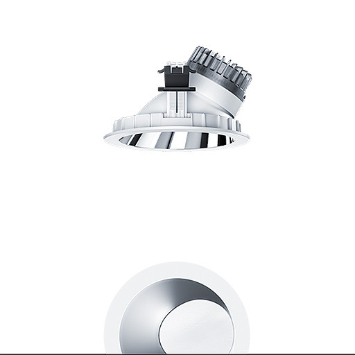 LED Decken-Einbauleuchte (Komplettleuchte) R150, asymmetrischer Lichtverteilung für die homogene Beleuchtung vertikaler Flächen (104 °), höchste Leuchteneffizienz und eine optimale Downlight Lichttechnik, hohe Nachhaltigkeit aufgrund durchgängigen, maximal- modularen Aufbau und austauschbaren Komponenten, Austauschbares LED-Modul, Farbwiedergabe Ra > 90, Farbtemperatur 3000 K, Farborttoleranz (initial MacAdam): 2, Leuchten Leistung: 8,7 W, Leuchten Lichtstrom: 950 lm, Leuchten Lichtausbeute: 109 lm/W, Mittlere Bemessungslebensdauer: L90 100000 h bei 25 °C + L95 50000 h bei 25 °C, mit separaten, steckbaren LED-Konverter, DALI steuerbare Leuchte (DALI only) mit DC-Funktion, einstellbar 1-100 %, Notstromlevel auf 15% voreingestellt, NFC konfigurierbar, SwitchDIM-kompatibel, hochwertige Reflektoreinheit über Bajonettverschluss an modularer LED-Lichtkammer arretiert, hocheffiziente LED Lichtkammer integriert im optimierten, passives Wärmemanagement aus hochwertigem wärmeleitendem Polycarbonat, Reflektor/Abdeckring aus hochwertigem, UV-beständigem Polycarbonat (PC), Reflektor: aluminiumbesputtert, hochglänzend, irisierungsfrei, mit zusätzlicher gewölbter MPO (Mikropyramidenoptik) Linse, Abdeckring: weiß, Einbauring aus Polycarbonat (PC), weiß, Schutzart: IP43_IP20, Leuchte halogenfrei verdrahtet, Anschluss: 5-polige Steckverbindungsklemme, Durchschleifen möglich, Netzspannung: 220-240 V / 0/50/60 Hz, Zentralbatterietauglich 220-240V DC, Montage: werkzeuglose Schnellmontage mittels Anti-Rutsch-Haltefedern für Deckenstärken von 1-35mm, werkzeuglose Schnellmontage der Leuchteneinheit mittels Bajonettverschluss, Deckenausschnitt: 150mm, Einbautiefe: 104mm, Gewicht: 0,58 kg