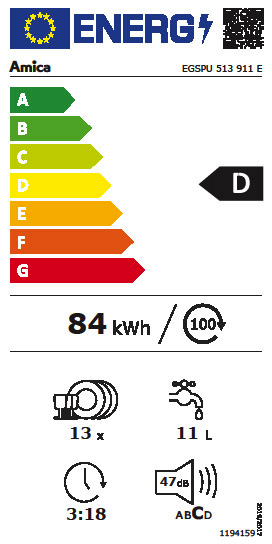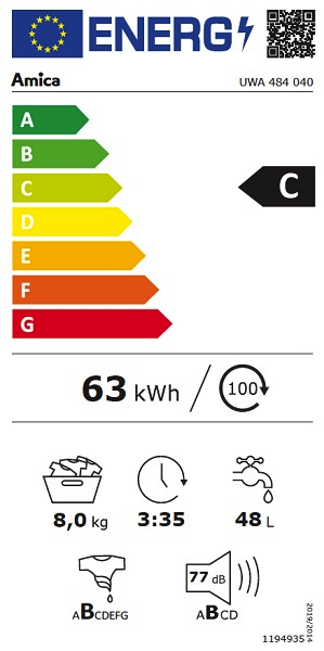 | Gewichteter Energieverbrauch pro 100 Waschzyklen im Programm eco 40-60 | 59 kWh |