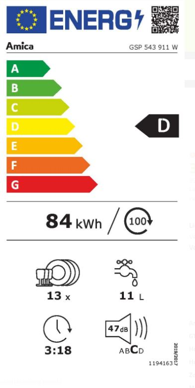 | Energieeffizienzklasse Geschirrspüler (2019/2017/EU) | C |