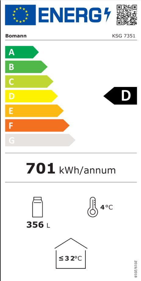 | Durchschnittlicher Energieverbrauch in kWh/Jahr | 701 kWh |