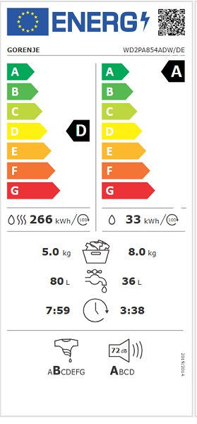 GORENJE W3D2A854ADPS/DE Waschtrockner