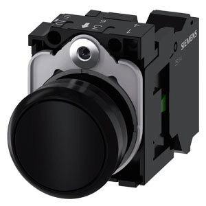 Drucktaster, 22 mm, rund, Kunststoff, schwarz, Druckknopf, flach, tastend, mit Halter 1S, Federzuganschluss Drucktaster SIRIUS ACT zur Schaltung und Steuerung elektrischer Verbraucher. Unter dem Markennamen SIRIUS ACT bietet Siemens ein einzigartiges Portfolio an Befehls- und Meldegeräten mit weltweiten Produkt-Zulassungen in drei modernen Designreihen aus robustem Echtmetall und hochwertigem Kunststoff. Das innovative Aufschnappkonzept vereinfacht die Montage so weit, dass dafür nur eine Hand und kein Spezialwerkzeug erforderlich ist. Als Montagebohrungen genügen nutfreie Löcher, da bereits ein 100%iger Verdrehschutz integriert ist. Dank der durchgängig hohen Schutzart sind die robusten Geräte industrietauglich und für den Außeneinsatz geeignet. Sogar die Reinigung mit Hochdruckstrahl ist möglich. Weder Staub, Öle noch aggressive Laugen können den zuverlässigen Betrieb stören. Neben der Standardverdrahtung können die meisten Geräte auch über PROFINET, AS-Interface oder IO-Link an die Steuerung angebunden werden. Damit reduzieren Sie Ihren Verdrahtungsaufwand, minimieren Fehlerquellen und gewinnen mehr Flexibilität. Komfortabel unterstützt der grafische Online-Konfigurator bei Auswahl und Bestellung von Einzelgeräten, Gehäusen und Beschriftungen. Umfangreiche Dokumentation (z.B. Handbuch, 3D-Daten, Anschlussdiagramm) ist verfügbar. Lieferbare Ausführungen: mehrere Farben, beleuchtet/unbeleuchtet, mit/ohne Beschriftung, verrastende/tastende Betätigung, verschiedene Druckknopf- und Frontringhöhen. Hinweis: Komplettgerät, Lieferung inklusive Halter und Module. SIRIUS ACT - Performance in Action beim Befehlen und Melden. Einfach montiert, einfach stark, einfach perfekt.