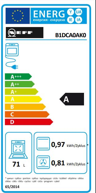 | Energieeffizienzklasse Geschirrspüler (2019/2017/EU) | A |