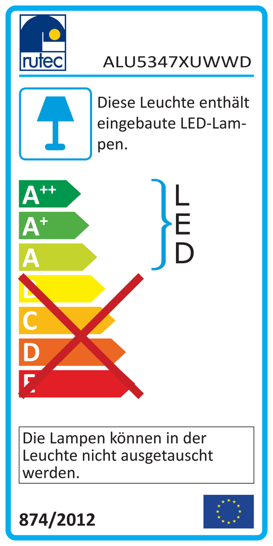 | Energieeffizienzklasse der Lichtquelle nach EU-Richtlinie 2019/2015 | nicht erforderlich |